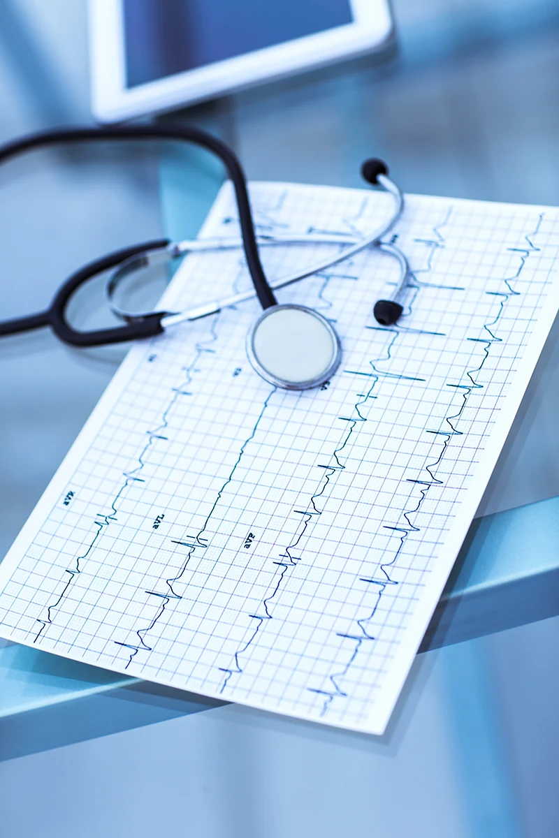 Exame medico rápido e indolor que mede os impulsos elétricos do coração.