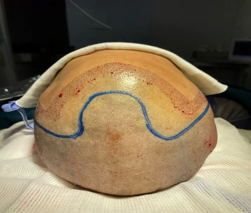 A posição inicial da cirurgia é a deitada com a barriga para baixo. Nessa posição é realizada a exposição das áreas doadoras para que se inicie o processo de retirada das unidades foliculares. Nessa etapa é iniciada a anestesia local em que o anestésico é infundido diretamente no couro cabeludo, garantindo que o paciente não sinta dor durante ou após finalizado o procedimento. Após finalizada a anestesia é iniciada a extração, em que as unidades foliculares serão retiradas uma a uma.